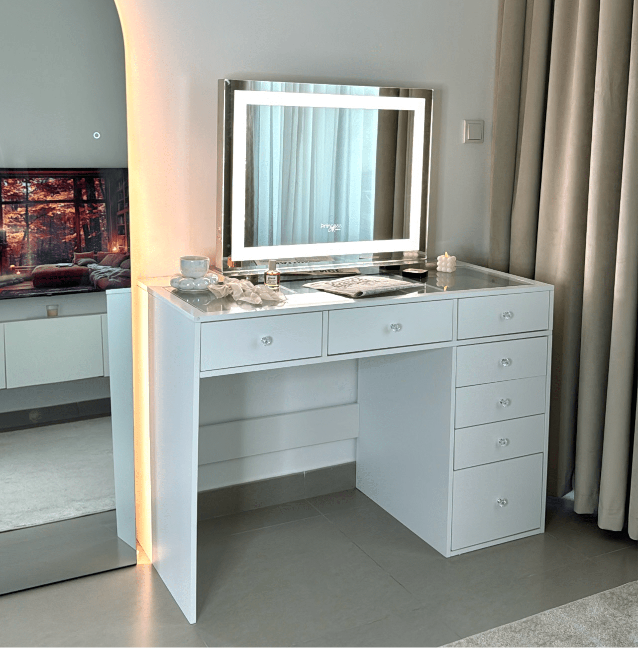 Apportez une touche raffinée et élégante à votre intérieur avec la Baby Vanity — une coiffeuse au design soigné, pensée pour les petits espaces sans compromis sur le style ni la praticité.