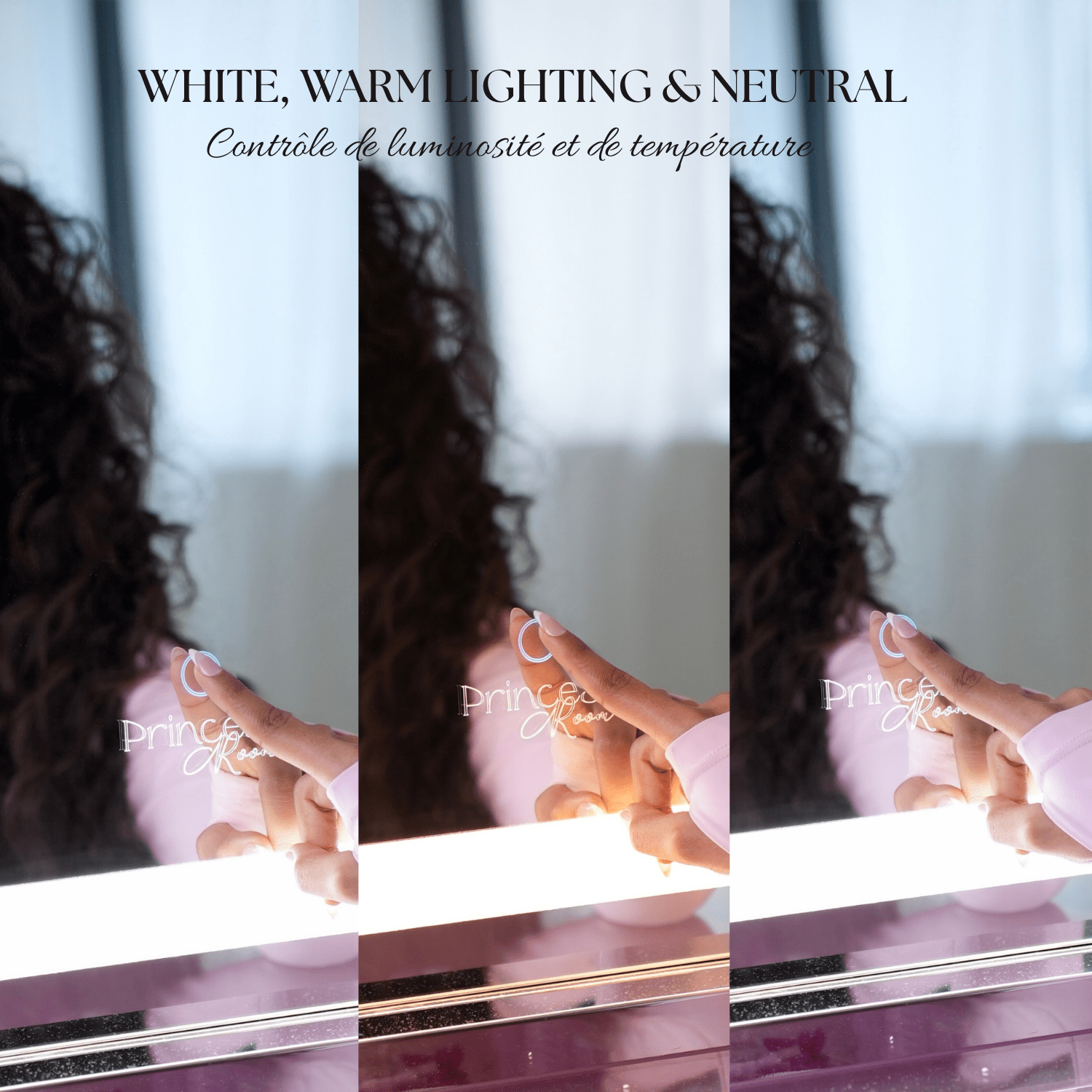 Éclairage LED réglable : Choisissez parmi trois modes d’éclairage — froid (6400K), naturel (4500K) ou chaud (3000K) — grâce au variateur tactile intuitif.